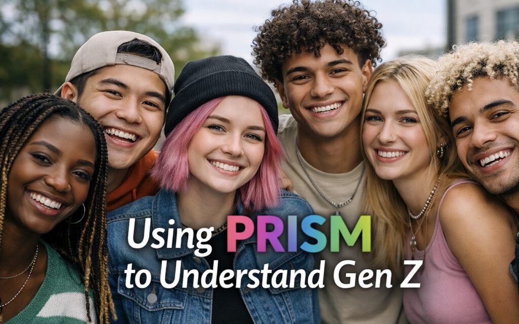 I’ve been thinking about the generational divide throughout my research over the last four years, which has focused on the behaviors that create the most friction on teams at work. Across the data, the same patterns kept showing up and eventually became the PRISM framework: Power, Risk, Identity, Speed, and Messaging. These five dimensions offer a practical way to structure healthy, open-ended conversations with Gen Z at work.